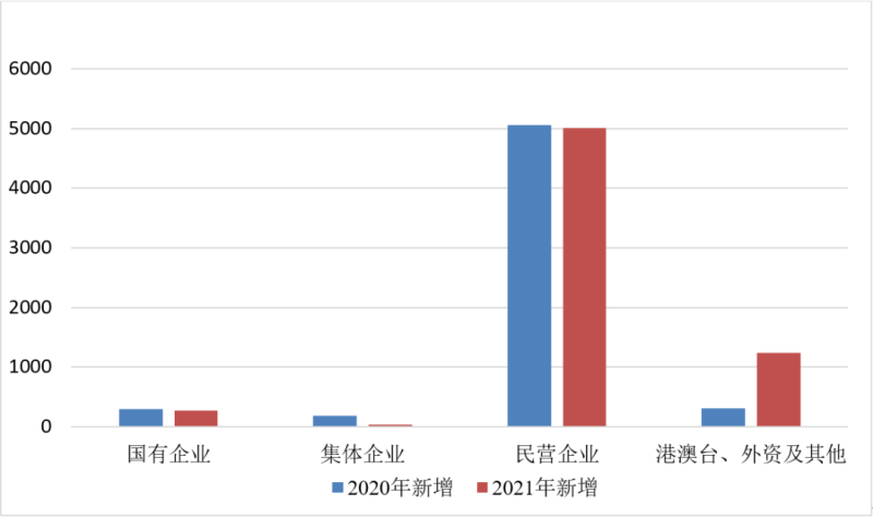 圖3 2020年、2021年不同經(jīng)濟(jì)性質(zhì)承裝(修、試)企業(yè)數(shù)量變化情況