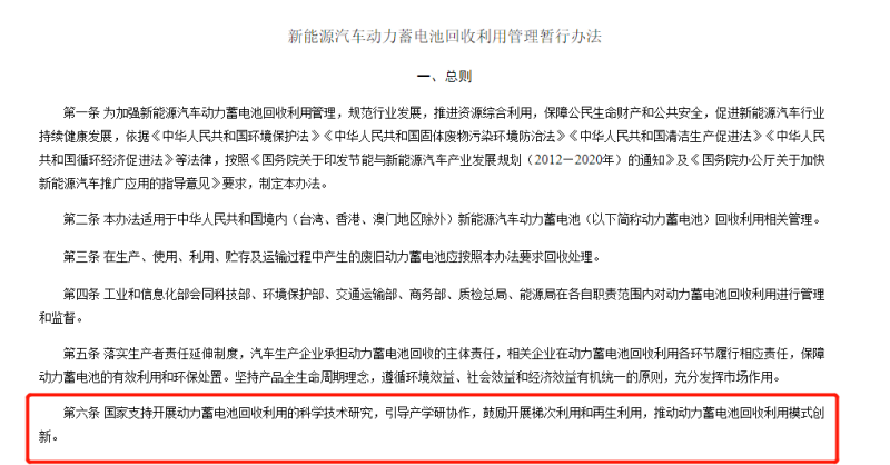 2018年,工信部等七部門(mén)曾聯(lián)合印發(fā)《新能源汽車(chē)動(dòng)力蓄電池回收利用管理暫行辦法》,強(qiáng)調(diào)了對(duì)動(dòng)力電池的梯次利用、回收網(wǎng)點(diǎn)建設(shè),并提出汽車(chē)生產(chǎn)企業(yè)承擔(dān)動(dòng)力蓄電池回收的主體責(zé)任,但究竟如何落實(shí)等并沒(méi)有相關(guān)條款,工信部正在研究制定的《新能源汽車(chē)動(dòng)力蓄電池回收利用管理辦法》或許會(huì)重點(diǎn)關(guān)注這些方面。
