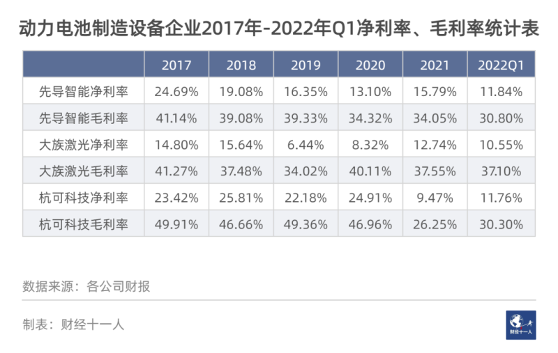 動力電池的設備制造是一條小而美的賽道,技術含量高,行業(yè)門檻高,競爭對手進入難度大,因此領先企業(yè)的優(yōu)勢比較穩(wěn)固。從利潤表現(xiàn)上看,設備制造企業(yè)的利潤普遍較高,特別是毛利率,均值接近40%。凈利率與毛利率差異較大,主要是因為制造設備正在加速從百萬分之一缺陷率(PPM)向十億分之一缺陷率(PPB)邁進,設備制造企業(yè)的研發(fā)投入巨大。