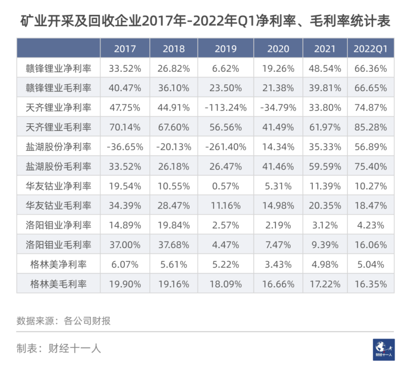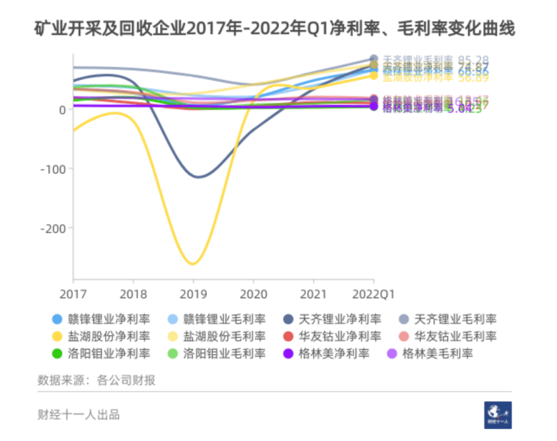 從利潤表現(xiàn)看,鋰礦企業(yè)的確收獲巨大,2022年第一季度天齊鋰業(yè)的毛利率超過85%。贛鋒鋰業(yè)的工作人員不無調侃地說:“看到了天齊的財報,就覺得以后有兄弟可以分攤炮火了。”