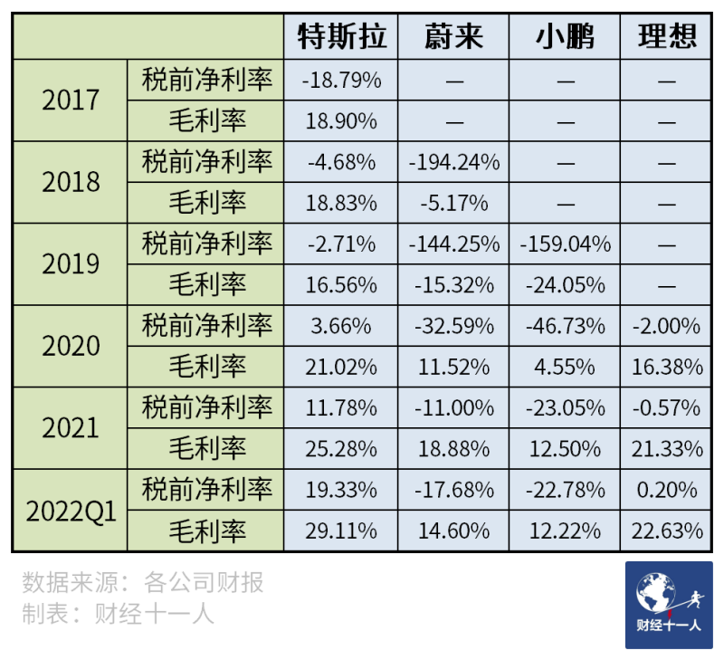 而主要生產新能源車的造車新勢力蔚來、小鵬和理想的利潤率自發(fā)布財報以來,毛利率和凈利率一直在逐年大幅改善。但2022年一季度,這種改善停下了腳步,三家的利潤率或明顯下滑,或僅有勉強增長。而三家企業(yè)的管理層在說明情況時,都提到了動力電池和多種關鍵材料的漲價對盈利狀況影響巨大。