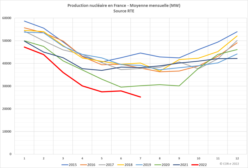 今年法國可用核電裝機(jī)容量(紅線代表2022年)遠(yuǎn)低于往年