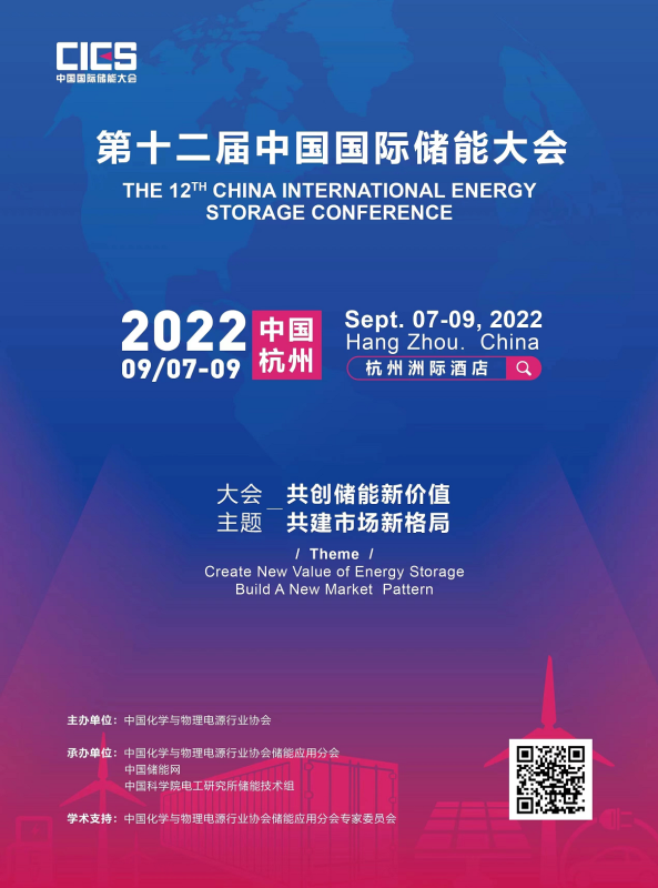 中國儲能網(wǎng)訊:“助力實現(xiàn)雙碳目標,賦能新經(jīng)濟發(fā)展!”由中國化學與物理電源行業(yè)協(xié)會主辦,中國化學與物理電源行業(yè)協(xié)會儲能應用分會、中國科學院電工研究所儲能技術組和中國儲能網(wǎng)聯(lián)合承辦的CIES2022第十二屆中國國際儲能大會9月7-9日在杭州洲際酒店盛大開幕。