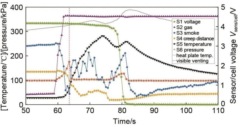 圖5 熱失控監(jiān)測預(yù)警信號變化過程