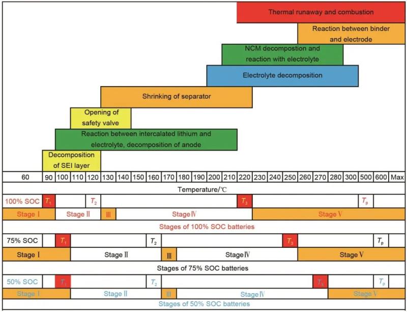 圖2 鋰離子電池?zé)崾Э胤磻?yīng)時序和溫度范圍