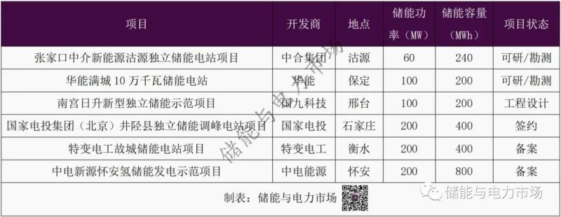 表:河北獨(dú)立儲能項(xiàng)目進(jìn)展(非示范項(xiàng)目)