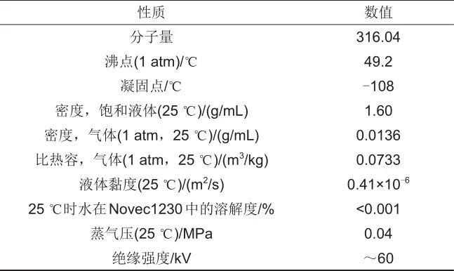 全氟己酮滅火劑常溫下是一種透明、無色、絕緣的液體,是哈龍和HFCs類滅火劑的優(yōu)良替代品,最先由美國(guó)3M公司研制開發(fā),商標(biāo)為Novec1230,主要參數(shù)見表1。全氟己酮是以物理吸熱為主的潔凈氣體滅火劑,具有較高熱容量,在合適的濃度下,滅火劑釋放后與空氣形成氣態(tài)混合物,吸收足夠多熱量,使環(huán)境溫度降到熄滅溫度點(diǎn)以下[9]。此外全氟己酮含氟滅火劑受熱易發(fā)生脫HF反應(yīng)、C—C鍵斷裂反應(yīng),產(chǎn)生CF3、CF2、CFO等自由基可以捕捉、消耗火焰中的自由基,中斷燃燒鏈?zhǔn)椒磻?yīng)。