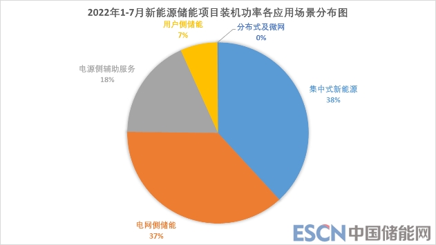 2021年1-7月國內(nèi)新增新型儲能(含規(guī)劃、在建和運行)項目個數(shù)266個,儲能規(guī)模11.82GW,其中新能源發(fā)電側(cè)裝機超過50%。對比來看,2022年1-7月新型儲能項目投運、擬在建、建設(shè)中的項目總裝機功率同比增長24.94%,而與去年電源側(cè)輔助服務(wù)占據(jù)主要比重的情況不同,今年集中式新能源項目以及電網(wǎng)側(cè)項目總裝機功率旗鼓相當(dāng),二者占比近75%,用戶側(cè)儲能在裝機功率比例上略有下降,而分布式及微網(wǎng)新能源項目占比依然很低,項目裝機容量上比重很輕,發(fā)展任重道遠(yuǎn),這與當(dāng)下的鄉(xiāng)村振興政策落實不到位亦有關(guān)。