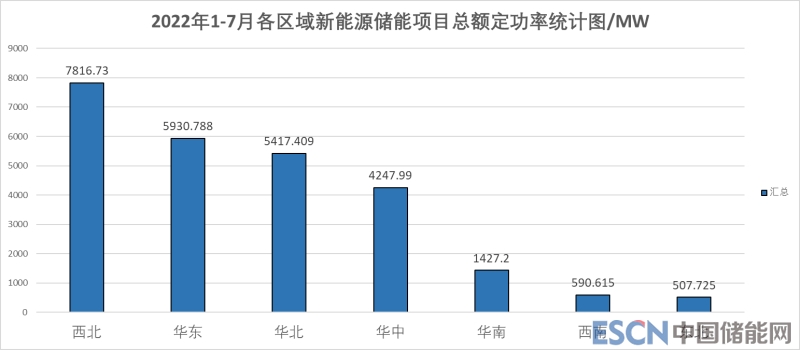 由各區(qū)域新能源項目總裝機功率統(tǒng)計圖可以看出,2022年1-7月新能源裝機主要集中在西北、華北、華中和華東地區(qū),分別占比30%、23%、21%和16%.
