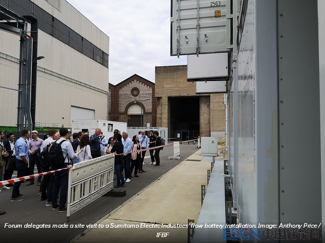 國際液流電池論壇(IFBF)參會代表參觀了住友電工公司的液流電池儲能系統(tǒng)