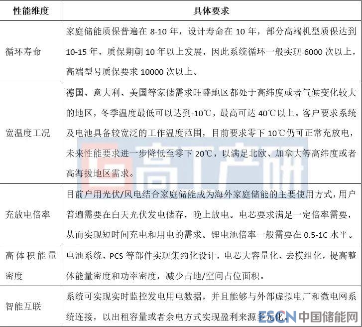 戶用家儲(chǔ)應(yīng)用于小型戶用備電場(chǎng)合,儲(chǔ)能系統(tǒng)帶電量普遍在5-20KWh。產(chǎn)品要求方面,戶用家儲(chǔ)產(chǎn)品在電氣安全和機(jī)械安全得到滿足的前提下,性能要求集中在長(zhǎng)循環(huán)壽命、寬溫度工況、充放電倍率和高體積能量密度等方面。產(chǎn)品平臺(tái)高壓化是戶用家儲(chǔ)產(chǎn)品發(fā)展重要趨勢(shì)。高壓化可降低電流,進(jìn)而減少放熱量,提升放電效率和安全性。隨著電動(dòng)車全球范圍普及、居民電價(jià)成本持續(xù)提升,戶用家儲(chǔ)系統(tǒng)容量有逐步增加的趨勢(shì),系統(tǒng)容量有望逐步從10KWh以下提升至15KWh以上,戶用PCS功率也將從3KW、5KW提升到8KW乃至三相10KW以上迭代。