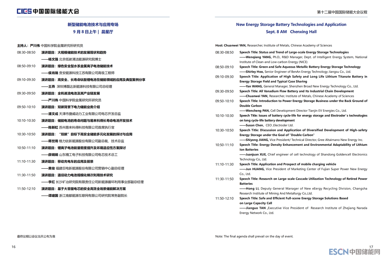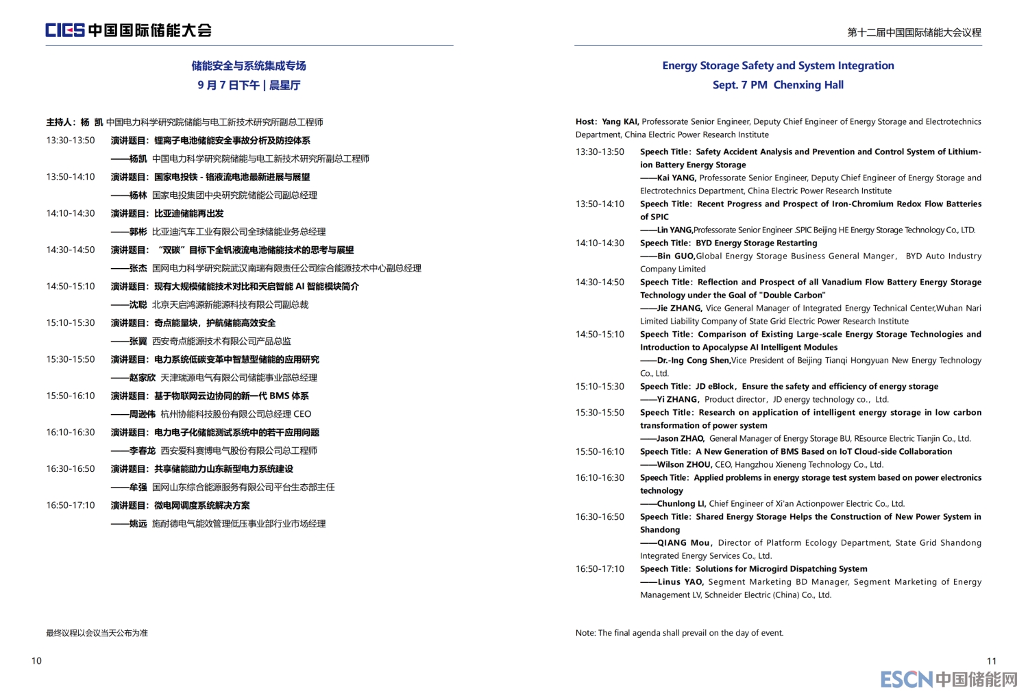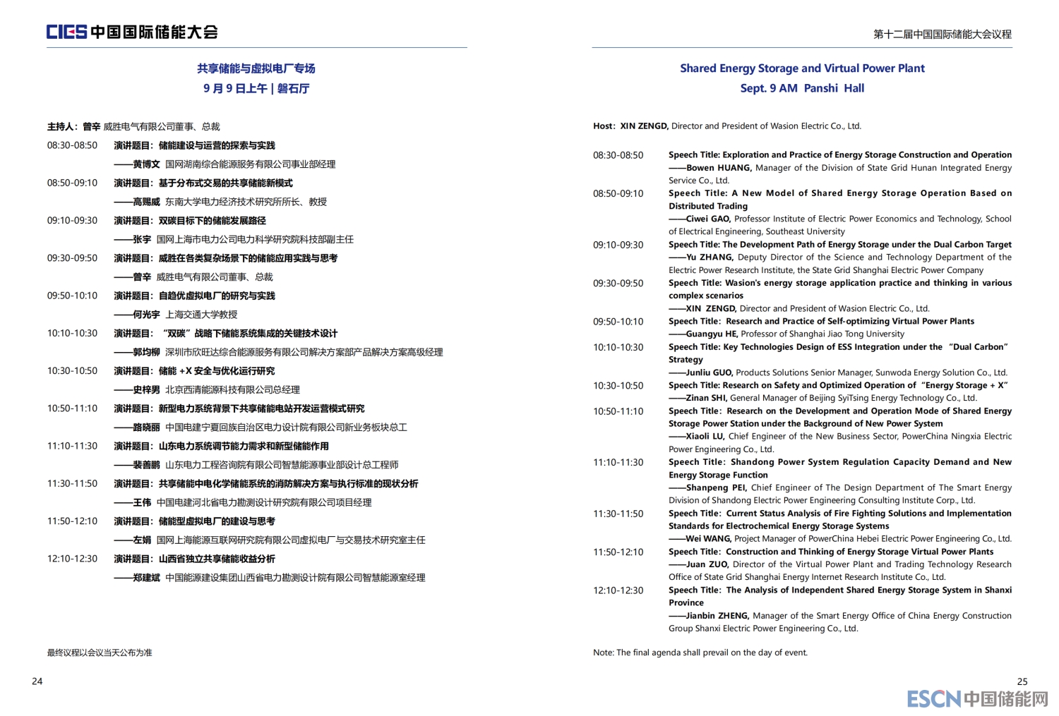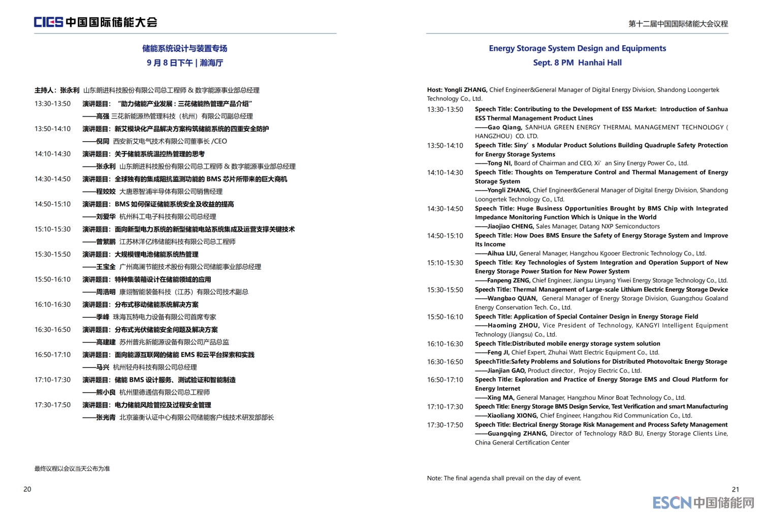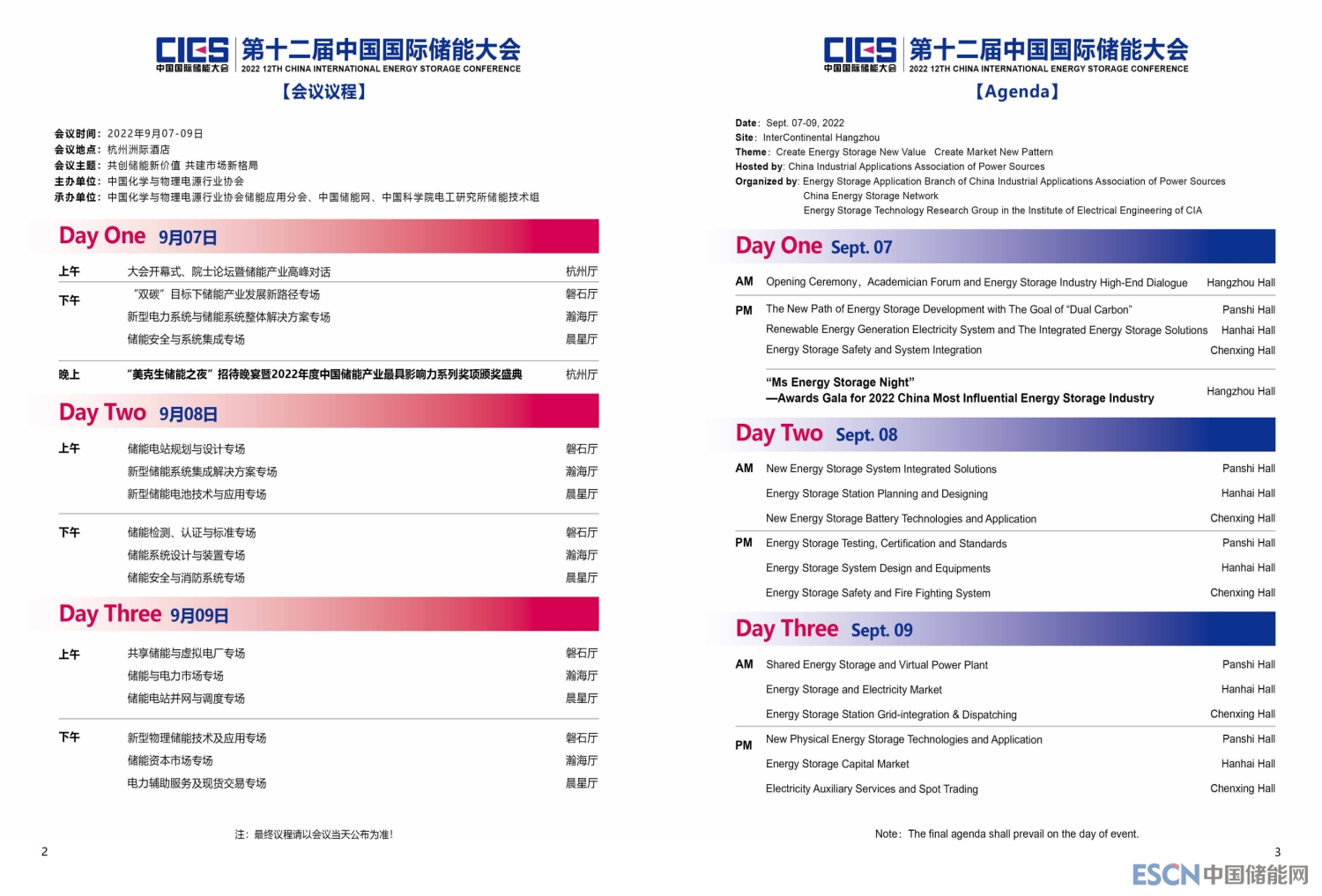 本次大會(huì)將安排有大會(huì)開幕式、院士專題報(bào)告及儲(chǔ)能產(chǎn)業(yè)高峰對(duì)話、“雙碳”目標(biāo)下儲(chǔ)能產(chǎn)業(yè)發(fā)展新路徑、新型電力系統(tǒng)與儲(chǔ)能系統(tǒng)整體解決方案、儲(chǔ)能安全與系統(tǒng)集成、新型儲(chǔ)能系統(tǒng)集成解決方案、儲(chǔ)能電站規(guī)劃與設(shè)計(jì)、新型儲(chǔ)能電池技術(shù)與應(yīng)用、儲(chǔ)能檢測(cè)、認(rèn)證與標(biāo)準(zhǔn)、儲(chǔ)能安全與消防系統(tǒng)、儲(chǔ)能系統(tǒng)設(shè)計(jì)與裝置、新型物理儲(chǔ)能技術(shù)及應(yīng)用、儲(chǔ)能電站并網(wǎng)與調(diào)度、儲(chǔ)能與電力市場(chǎng)、儲(chǔ)能資本市場(chǎng)、共享儲(chǔ)能與虛擬電廠、電力輔助服務(wù)及現(xiàn)貨交易等16個(gè)專場(chǎng)論壇。