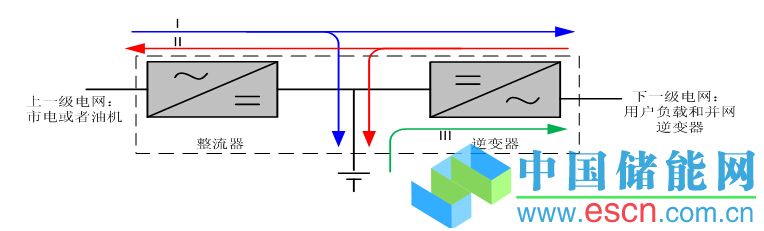 3:當(dāng)光伏系統(tǒng)不發(fā)電或發(fā)出的電能不足以供給用戶負(fù)載使用時(shí),通過調(diào)配儲(chǔ)能變流器所接電池里存儲(chǔ)的能量供負(fù)載使用。
