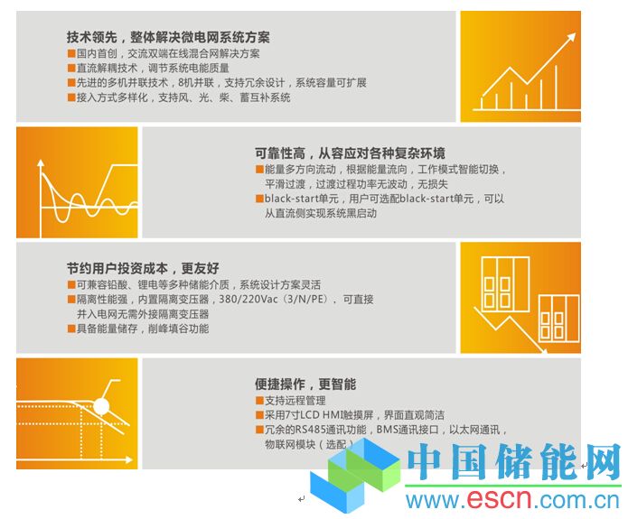 北麂島微電網(wǎng)電站項(xiàng)目采用四臺(tái)250kVA并聯(lián)形成微網(wǎng)主干網(wǎng),作為電壓源為系統(tǒng)提供穩(wěn)定優(yōu)質(zhì)的電壓支撐。匯川IBD100系列雙向變換器是國內(nèi)獨(dú)創(chuàng)專為可再生能源微電網(wǎng)設(shè)計(jì),特征如下: