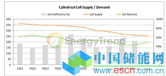 ▲ 圓柱形電池供需狀況(圖片來源:EnergyTrend)