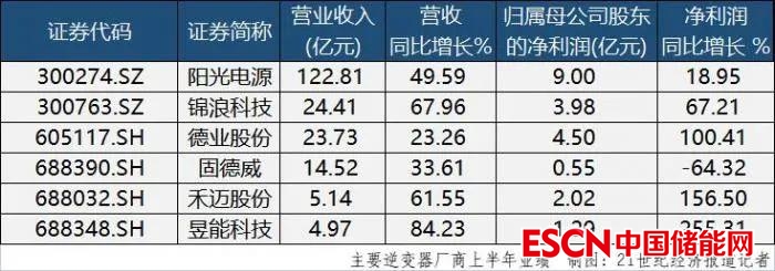 隨著A股上市公司中報(bào)披露的收尾,陽光電源(300274.SZ)、錦浪科技(300763.SZ)、固德威(688390.SH)、德業(yè)股份(605117.SH)、禾邁股份(688032.SH)、昱能科技(688348.SH)六家逆變器上市公司悉數(shù)公布了上半年的經(jīng)營情況。