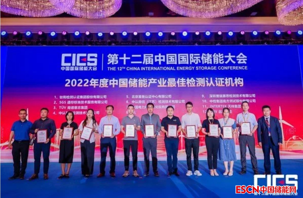 TUV南德再度榮膺“2022年度中國(guó)儲(chǔ)能產(chǎn)業(yè)最佳檢測(cè)認(rèn)證機(jī)構(gòu)獎(jiǎng)”