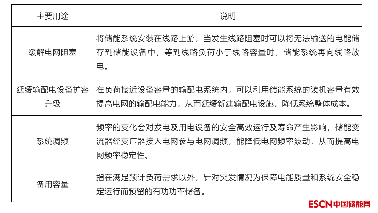 表2 儲能在電網(wǎng)側(cè)的主要用途
