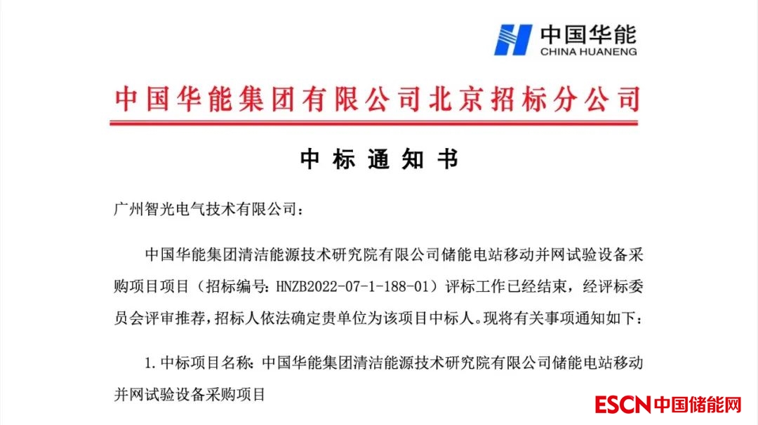 中國儲能網(wǎng)訊:2022年9月13日,廣州智光電氣股份有限公司控股子公司廣州智光電氣技術(shù)有限公司(以下簡稱“智光電氣技術(shù)”)成功中標(biāo)中國華能集團(tuán)清潔能源技術(shù)研究院有限公司儲能電站移動并網(wǎng)試驗(yàn)設(shè)備采購項(xiàng)目。