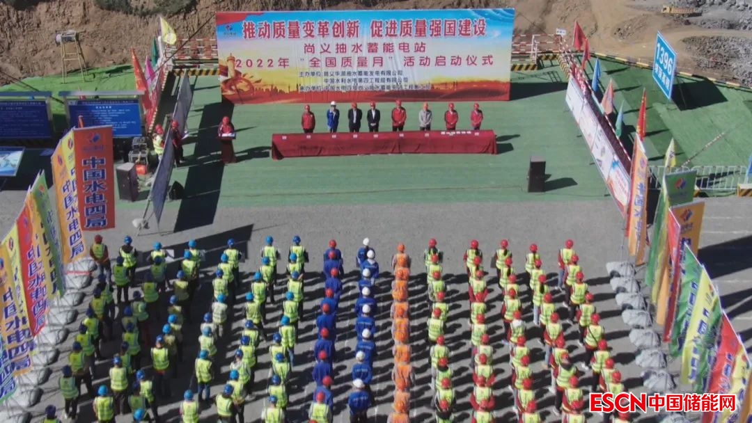 項(xiàng)目觀景臺(tái)上,條幅高掛,彩旗飄揚(yáng),尚義抽水蓄能電站正在舉行以“推動(dòng)質(zhì)量變革創(chuàng)新 促進(jìn)質(zhì)量強(qiáng)國(guó)建設(shè)”為主題的2022年“全國(guó)質(zhì)量月”活動(dòng)啟動(dòng)儀式。