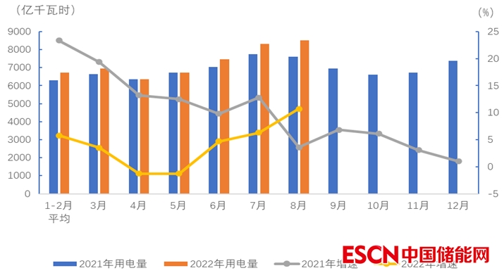 中國儲能網(wǎng)訊:1-8月,全國全社會用電增速同比提高,第一產(chǎn)業(yè)、第三產(chǎn)業(yè)和城鄉(xiāng)居民生活用電量增速高于全社會平均水平;全國28個省份全社會用電量實(shí)現(xiàn)正增長;工業(yè)和制造業(yè)用電量增速低于全社會平均水平;化工和有色行業(yè)用電量正增長,建材和黑色行業(yè)用電量負(fù)增長。