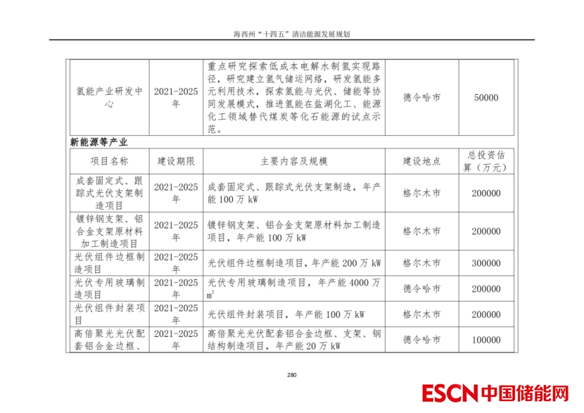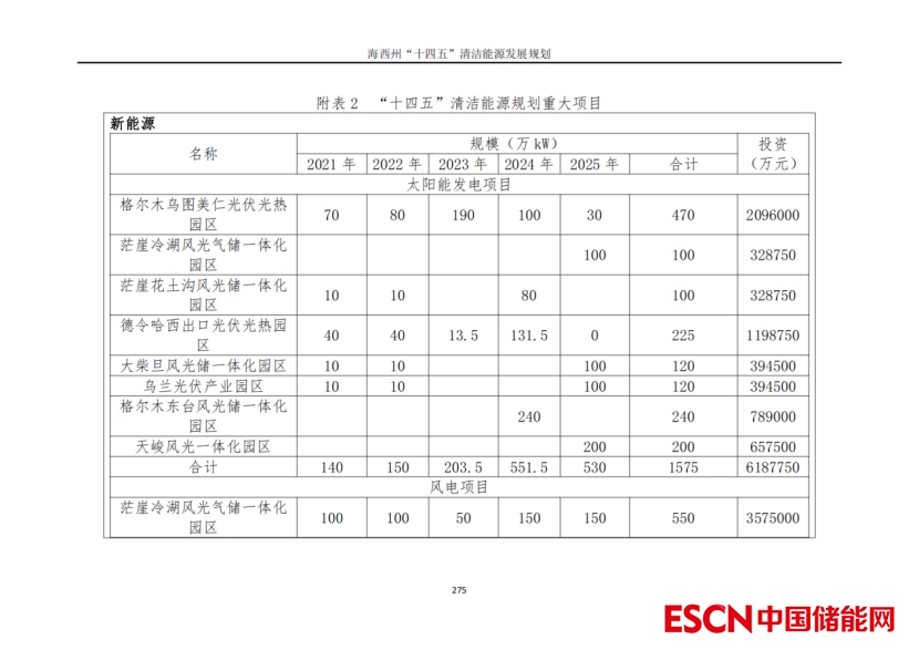 投資情況方面,海西州“十四五”規(guī)劃推薦方案光伏新增1520萬千瓦,投資需求約494億元;風(fēng)電新增830萬千瓦,投資需求約539.5.5億元,光熱55萬千瓦,投資需求約119億元;新能源發(fā)電配套電化學(xué)儲能投資約193.2億元;基礎(chǔ)設(shè)施投資約256億元;特高壓外送通道工程投資約358億元;清潔能源配套產(chǎn)業(yè)和技術(shù)研究投資約305億元?!笆奈濉币?guī)劃新增各類項目總投資合計約2311.7億元。