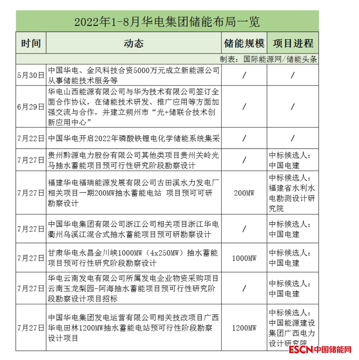 2022年,華電集團成立新能源公司從事儲能技術(shù)服務等業(yè)務,并開啟磷酸鐵鋰電化學儲能系統(tǒng)集采。儲能項目招標6個,均為抽水蓄能項目。