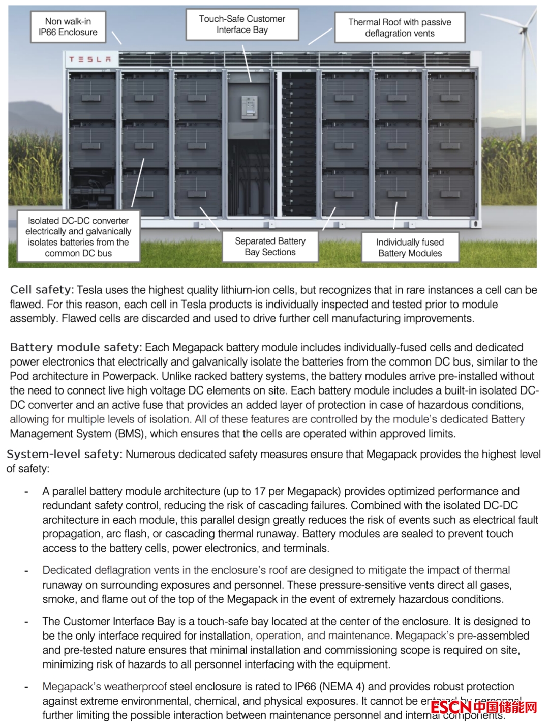 如果我們再來看特斯拉設(shè)置的MegaPack的安全設(shè)計,確實涵蓋了電芯,模組和系統(tǒng)層面的內(nèi)容。