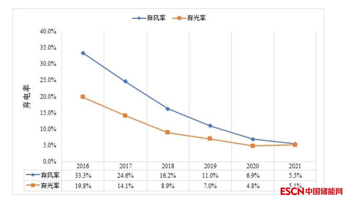 圖4 西北電網(wǎng)棄風(fēng)棄光率變化情況(2016~2022)