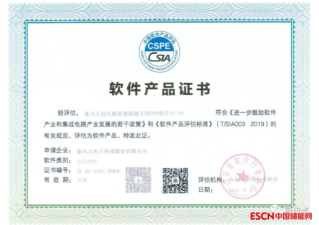 近日獲悉,新風(fēng)光電子科技股份有限公司(以下簡(jiǎn)稱新風(fēng)光)自主研發(fā)的“新風(fēng)光高壓儲(chǔ)能變流器主控DSP軟件V1.00”獲得軟件產(chǎn)品登記證書,證書編號(hào)為:魯RC-2021-0968。