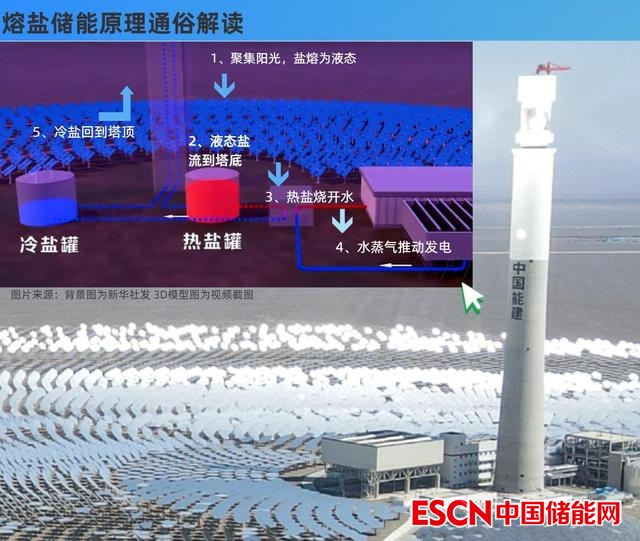 公開資料顯示,熔鹽儲能技術(shù)是以熔鹽儲能材料為媒介,將太陽能光熱、低熱、工業(yè)余熱、低品位廢熱、谷電等情況以熱能的形式儲存起來,在需要時進行釋放,最大限度地提高整個系統(tǒng)的能源效率。