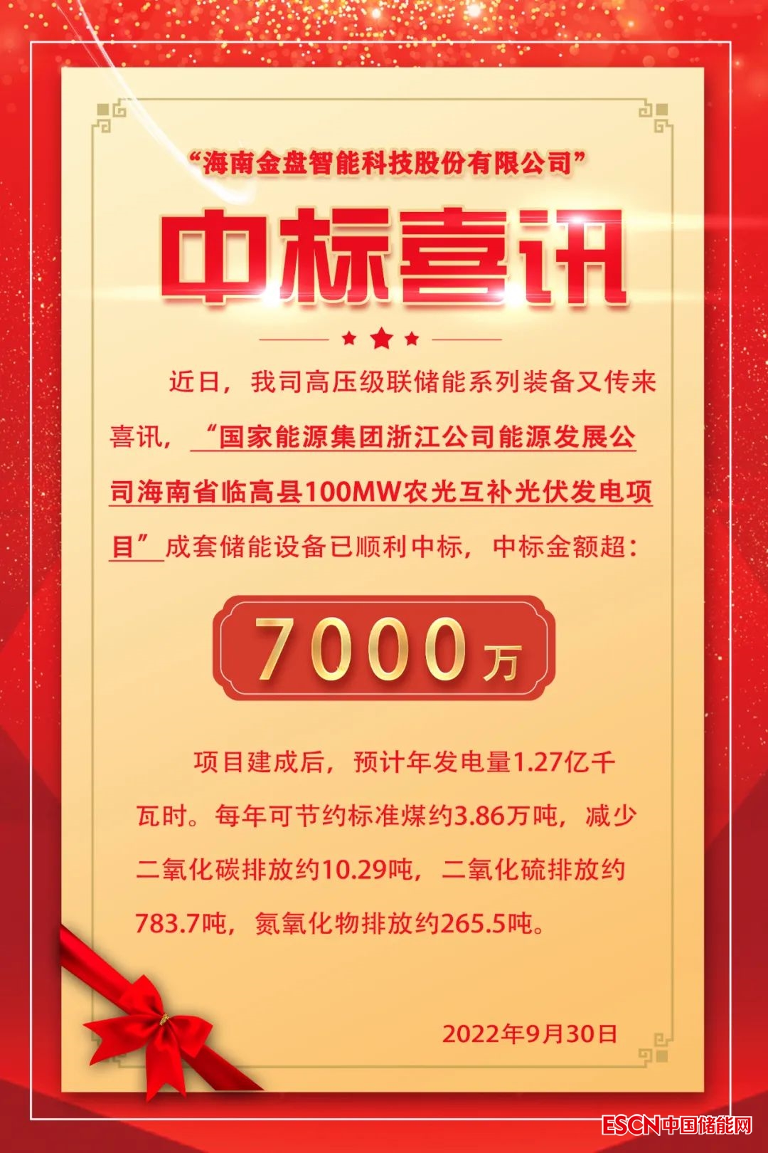 喜訊丨金盤科技又一高壓級聯(lián)儲能項目中標(biāo)
