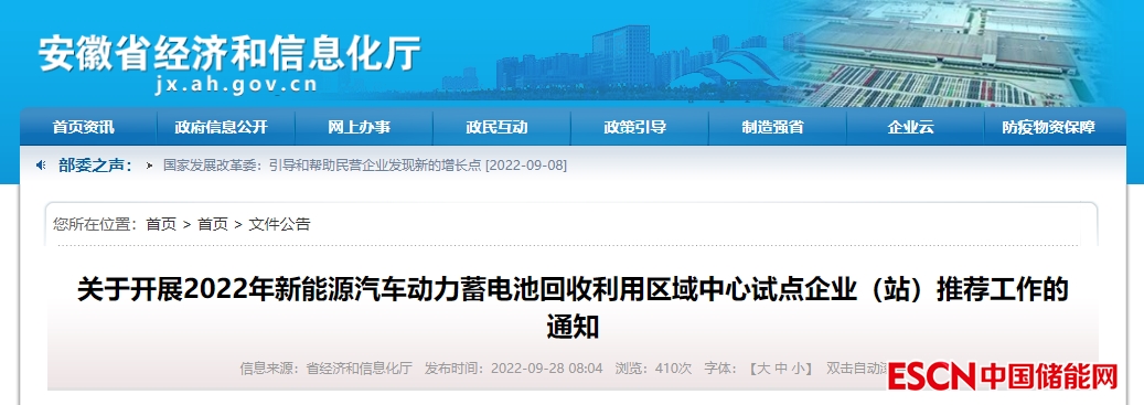 中國(guó)儲(chǔ)能網(wǎng)訊:日前,我省啟動(dòng)2022年新能源汽車(chē)動(dòng)力蓄電池回收利用區(qū)域中心試點(diǎn)企業(yè)(站)推薦工作。