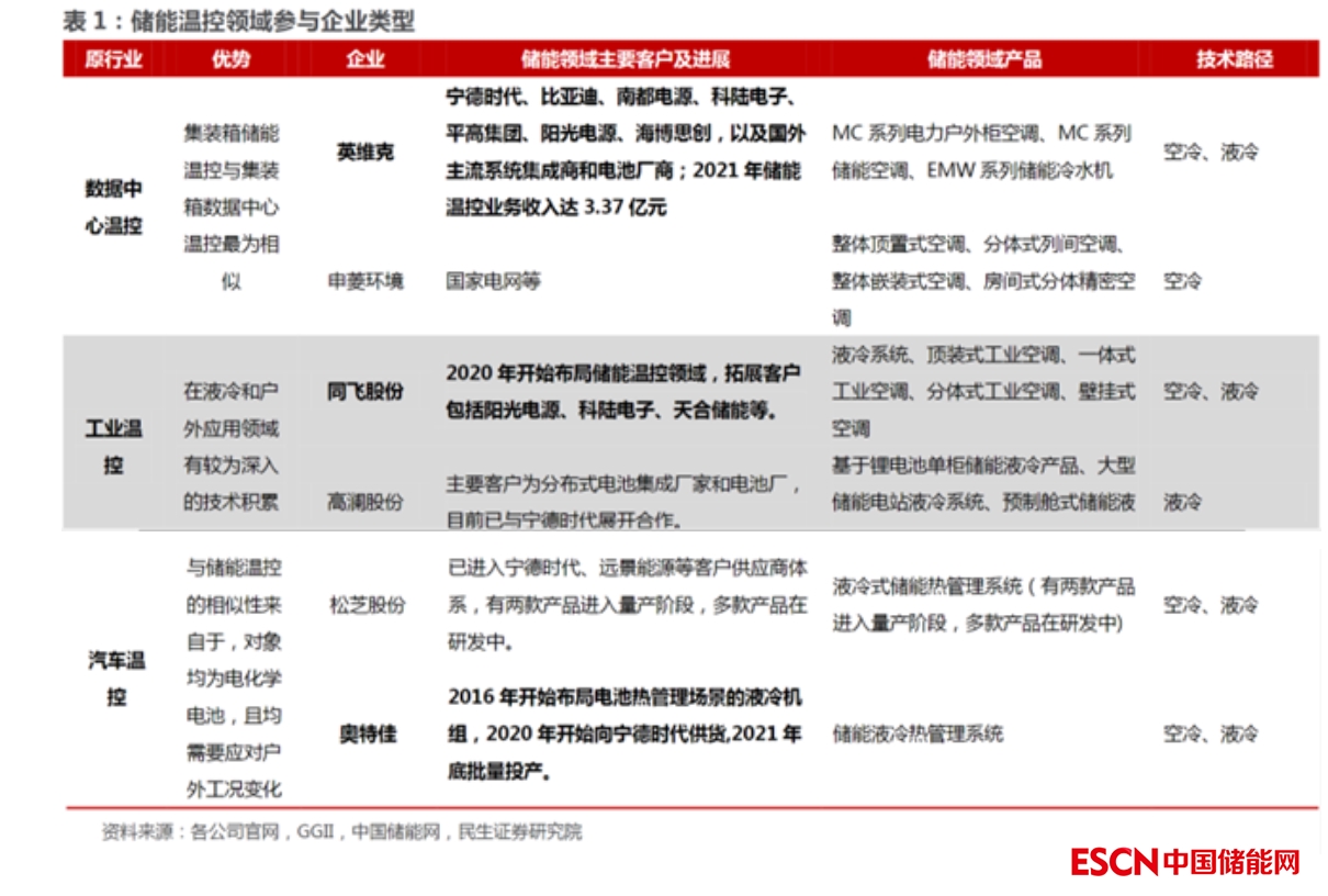 據(jù)民生證券研報(bào)整理,布局儲(chǔ)能溫控領(lǐng)域的企業(yè)有: