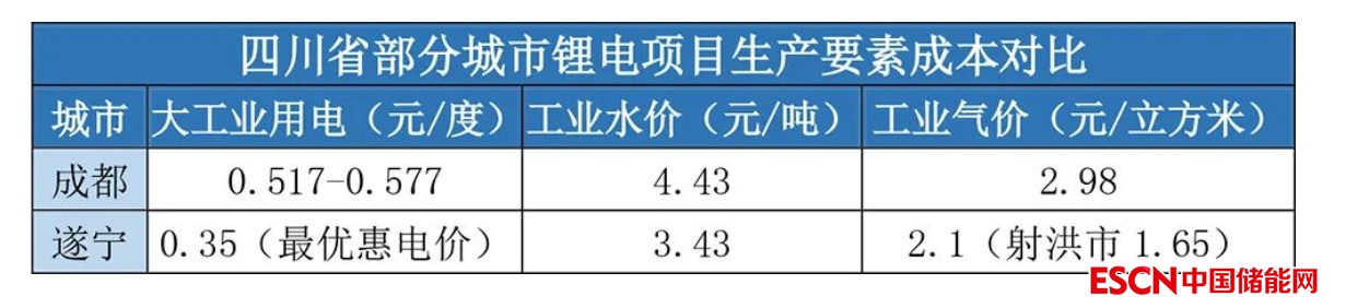 除了上游資源可合理調(diào)配,遂寧其他生產(chǎn)要素成本優(yōu)勢(shì)也較為明顯:
