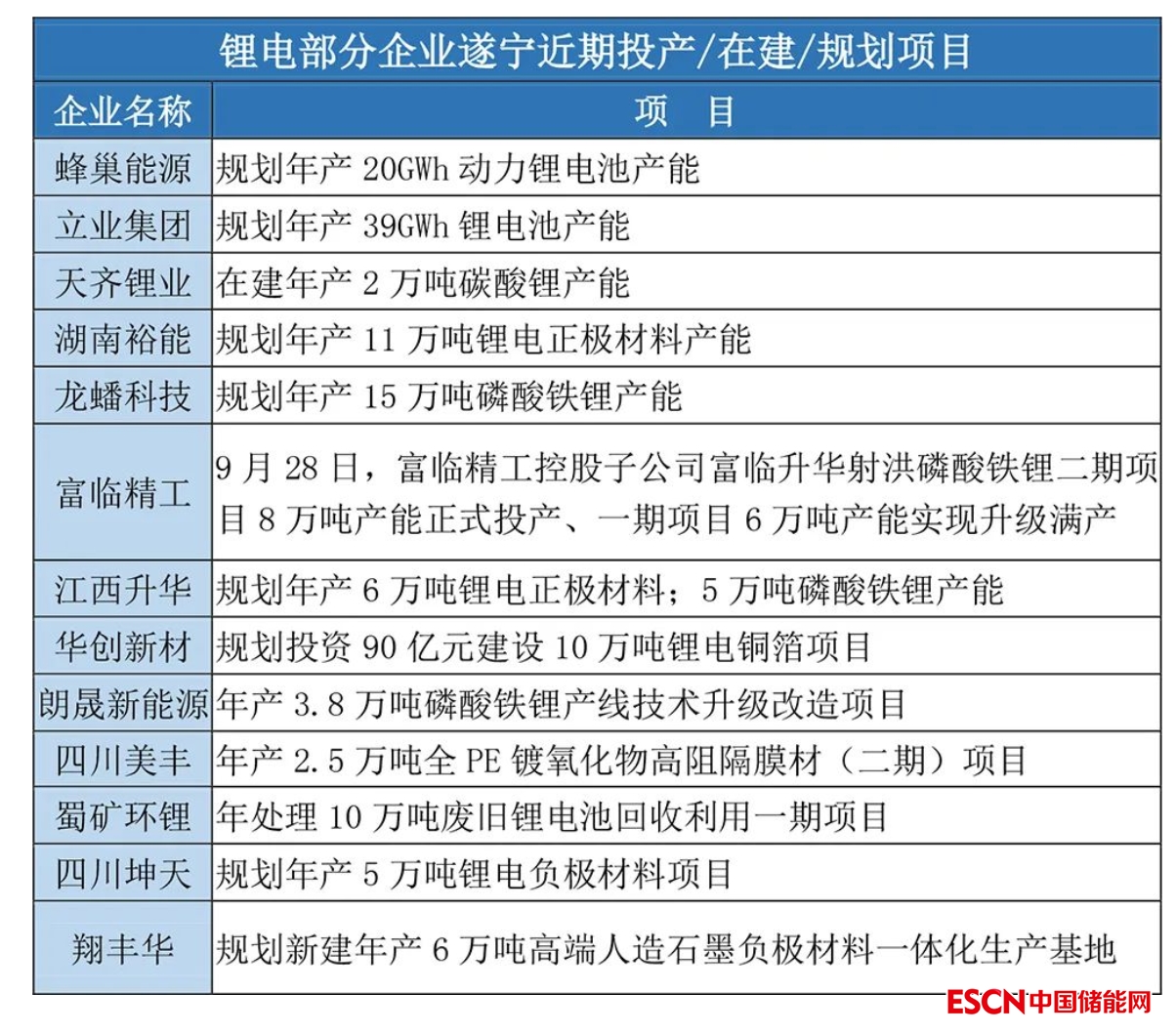 據(jù)不完全統(tǒng)計(jì),鋰電部分企業(yè)在遂寧近期投產(chǎn)/在建/規(guī)劃項(xiàng)目如下所示: