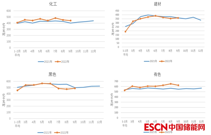 圖4 2021、2022年重點(diǎn)行業(yè)分月用電量情況