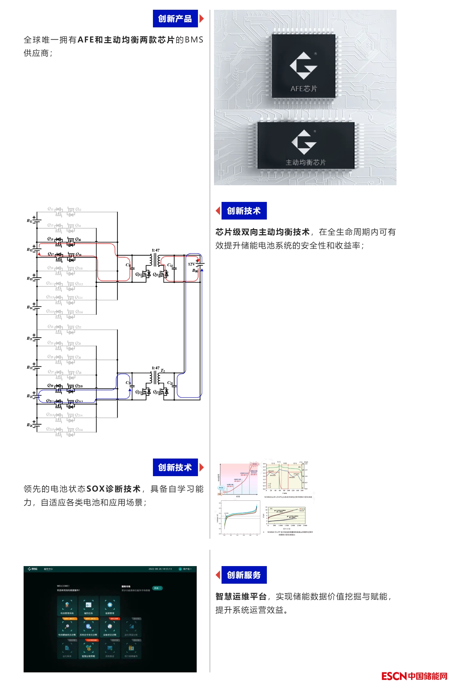 在電池狀態(tài)SOX計(jì)算和電池主動(dòng)均衡技術(shù)上處于行業(yè)領(lǐng)先地位。具有自主知識產(chǎn)權(quán)的BMS專用芯片和雙向主動(dòng)均衡芯片、1500V主動(dòng)均衡BMS等產(chǎn)品,已實(shí)現(xiàn)儲(chǔ)能應(yīng)用場景的全覆蓋。