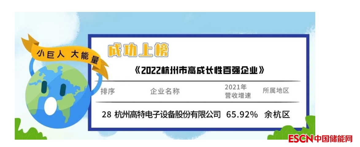 中國儲(chǔ)能網(wǎng)訊:近日,杭州高特電子設(shè)備股份有限公司被國家工業(yè)和信息化部認(rèn)定為第四批專精特新“小巨人”企業(yè)。