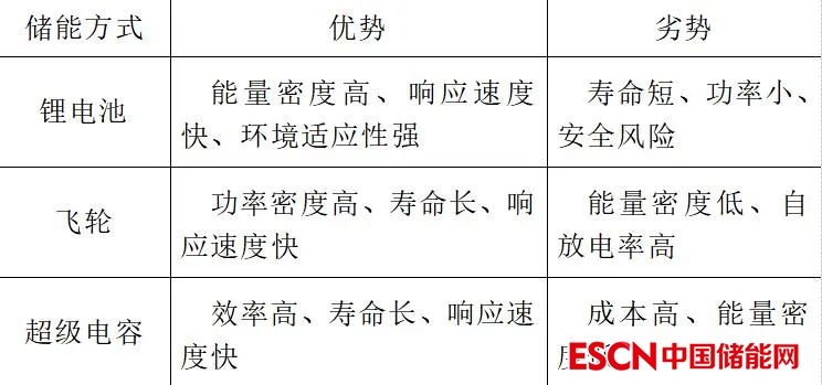 幾種常見的儲能方式見表1。其中,鋰電池應(yīng)用最廣泛,技術(shù)也最成熟,但其安全性差、壽命短。