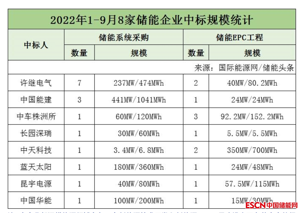 除此之外,國際能源網(wǎng)/儲(chǔ)能頭條(微信號(hào):chuneng365)梳理發(fā)現(xiàn),許繼電氣、中國能建、中車株洲所、長(zhǎng)園深瑞、中天科技、藍(lán)天太陽、昆宇電源、中國華能8家企業(yè)在儲(chǔ)能系統(tǒng)采購和儲(chǔ)能EPC工程招標(biāo)中均有所斬獲。