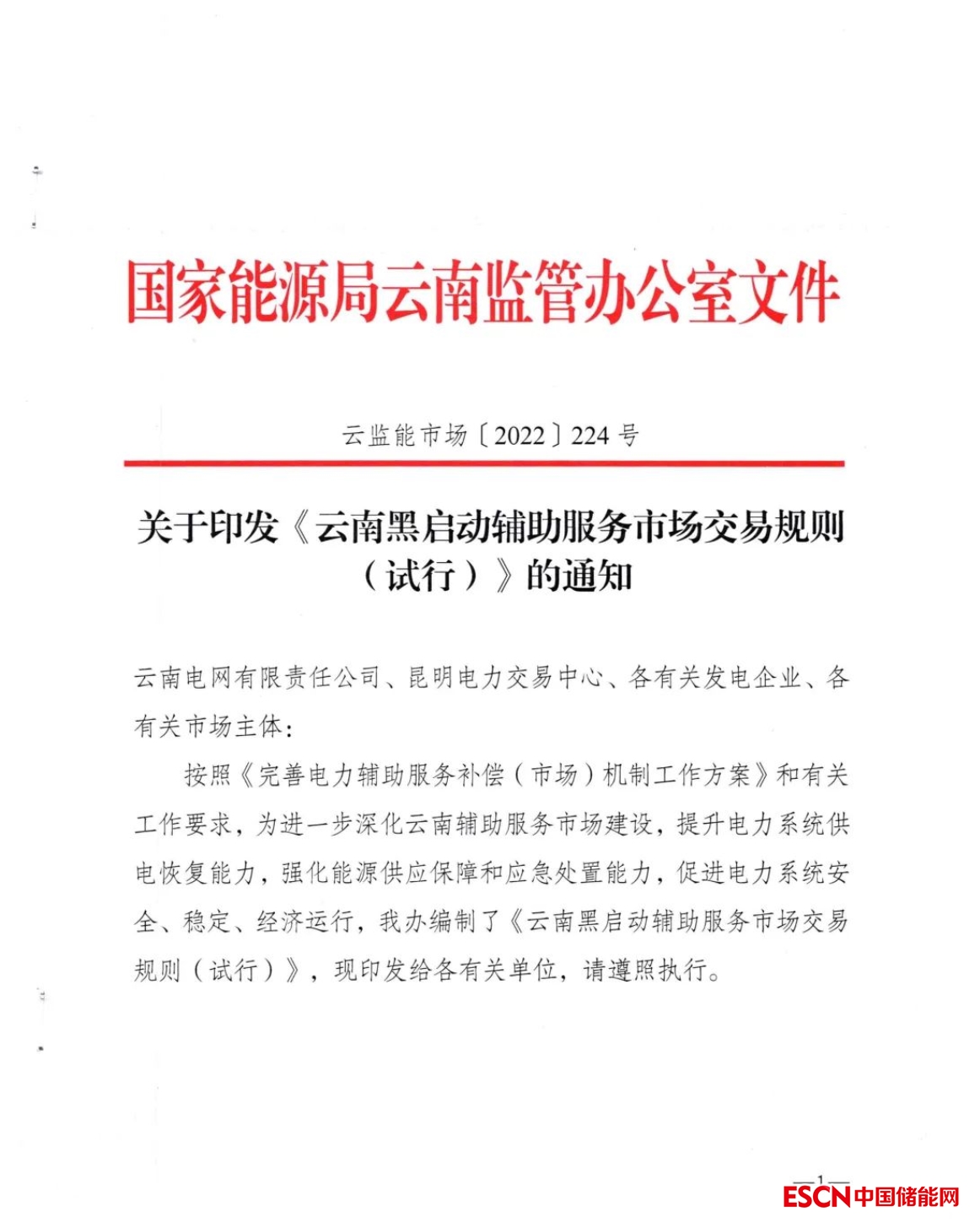 中國(guó)儲(chǔ)能網(wǎng)訊:10月19日,云南省能監(jiān)辦發(fā)布了《云南黑啟動(dòng)輔助服務(wù)市場(chǎng)交易規(guī)則(試行)》(以下簡(jiǎn)稱《交易規(guī)則》),并自印發(fā)之日起執(zhí)行此規(guī)則。