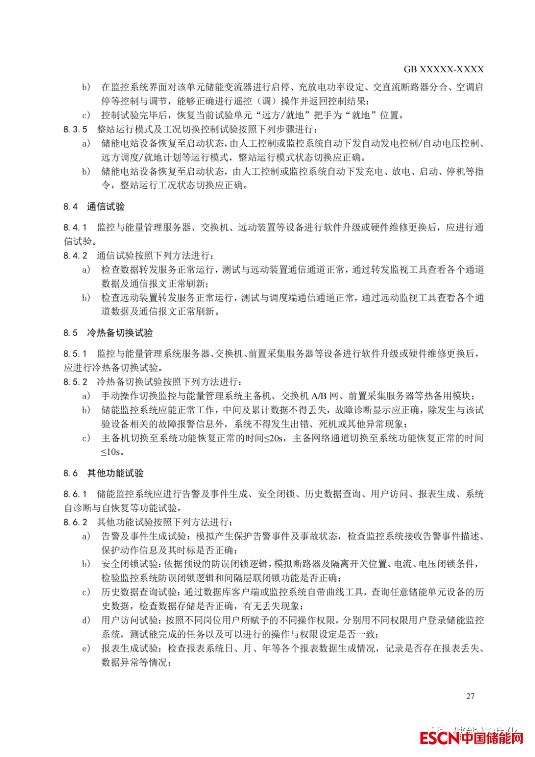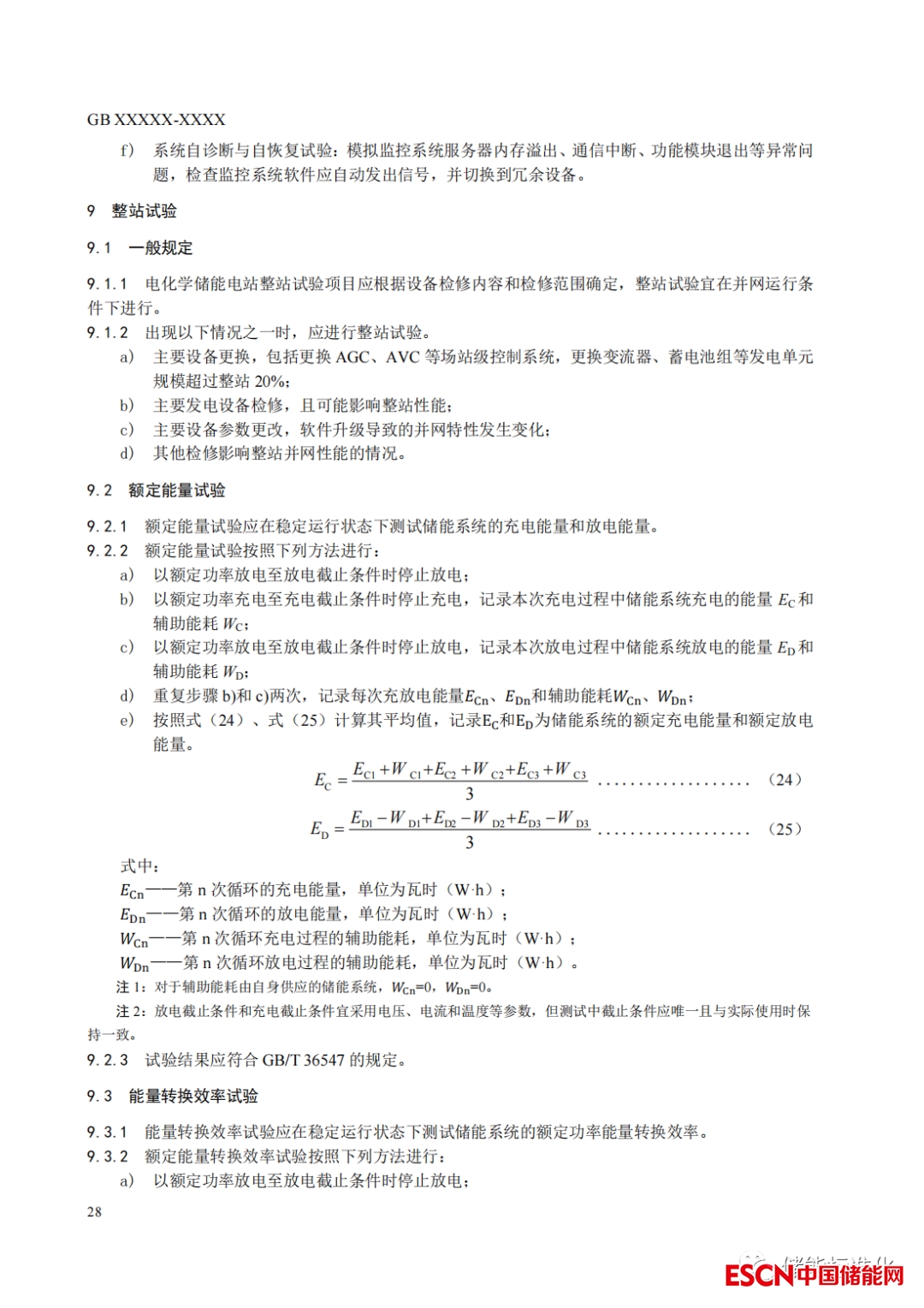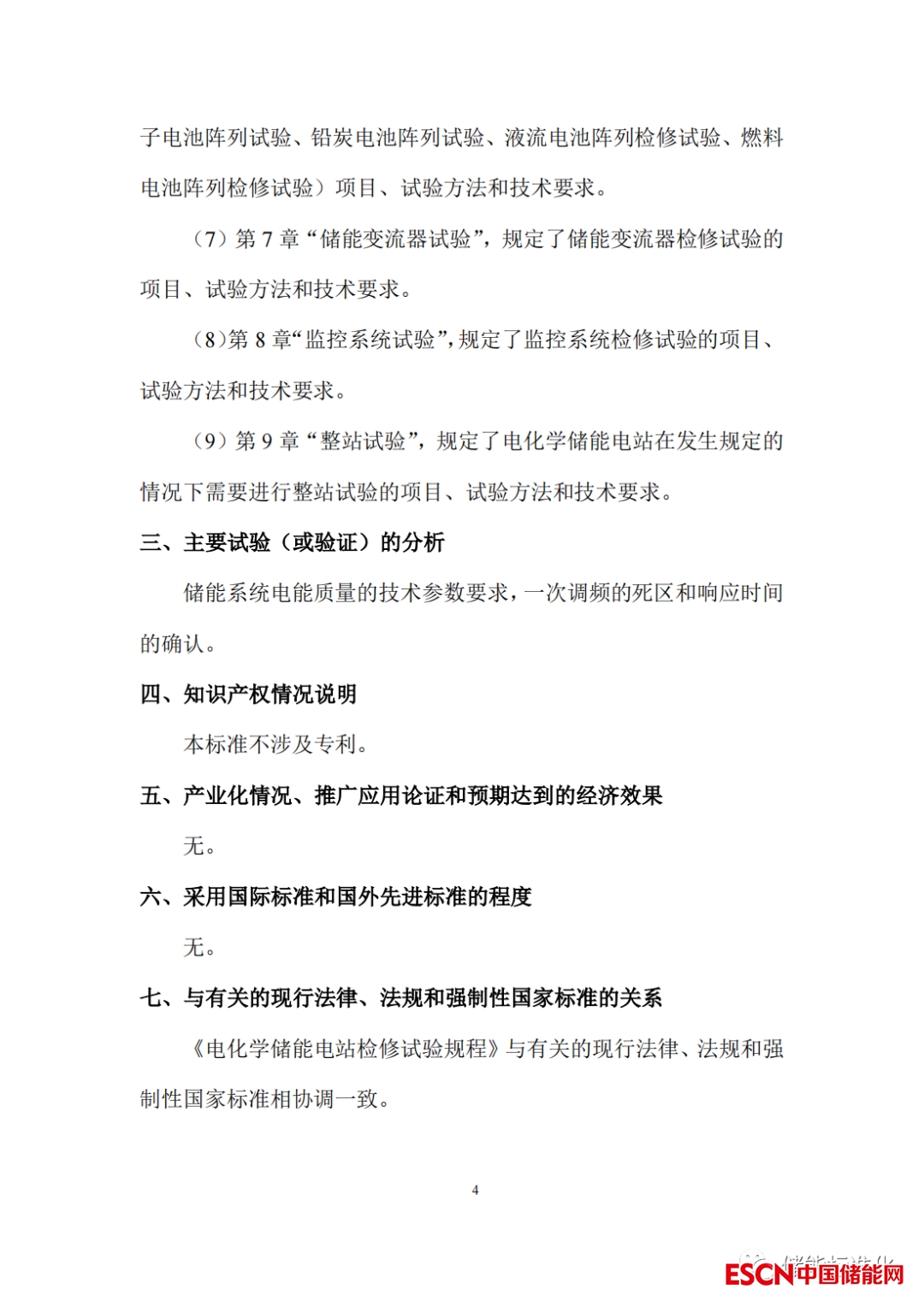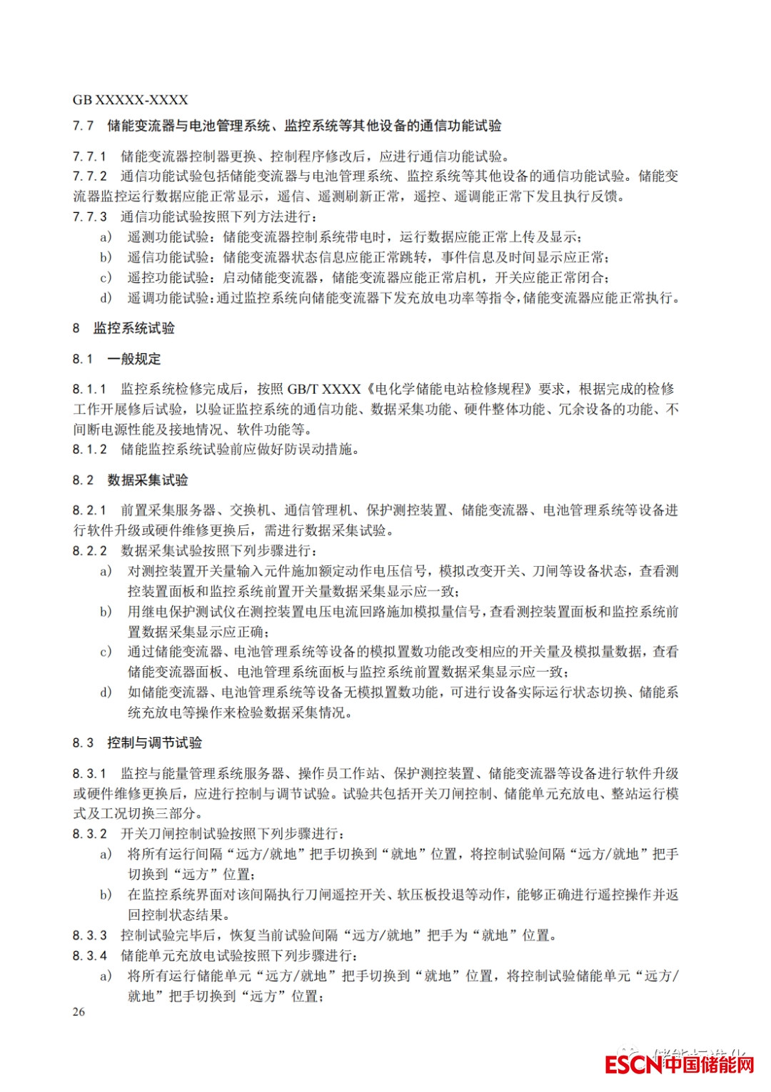 《電化學(xué)儲能電站檢修試驗規(guī)程》規(guī)定了電化學(xué)儲能電站檢修試驗所需試驗設(shè)備和電池陣列、儲能變流器、監(jiān)控系統(tǒng)以及整站試驗的項目、方法和技術(shù)要求等,全面反映了電化學(xué)儲能電站檢修試驗的規(guī)范化要求。本文件適用于以鋰離子電池、鉛炭電池、液流電池、燃料電池為儲能載體的電化學(xué)儲能電站。
