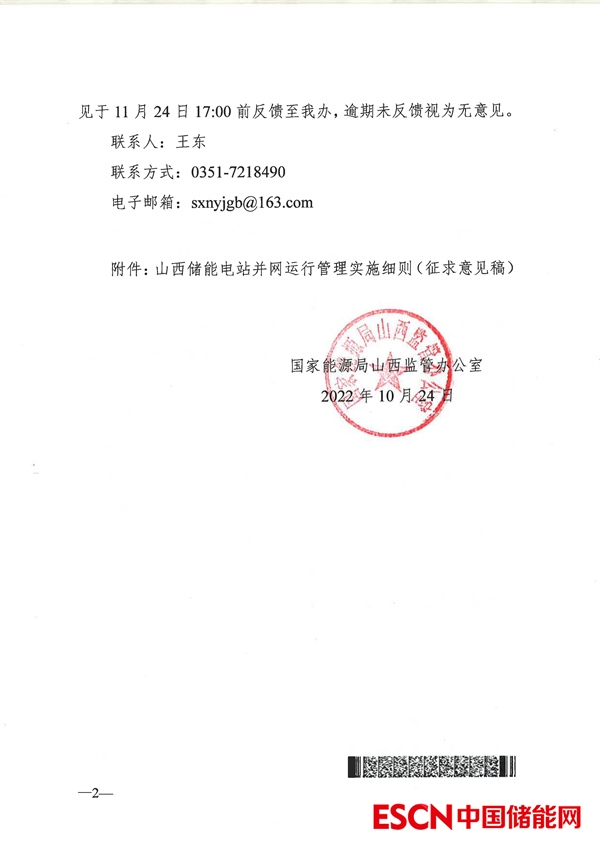 中國儲能網(wǎng)訊:10月27日,山西省能監(jiān)辦發(fā)布《山西儲能電站并網(wǎng)運行管理實施細則(征求意見稿)》。