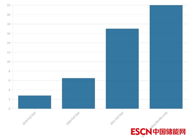 今年前三季度儲(chǔ)能行業(yè)廠商融資總額超過了2019年、2020年和2021年的全年籌集的資金
