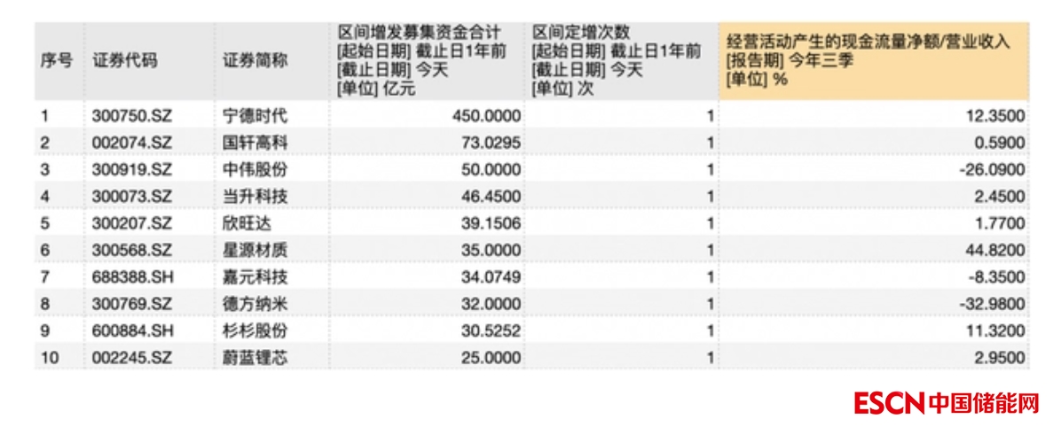 或許正是在業(yè)績的刺激下,鋰電企業(yè)加足馬力擴張。一年前至今,共有16家企業(yè)增發(fā)募資,其中寧德時代以450億元的巨額募資位居榜首,國軒高科居第二。