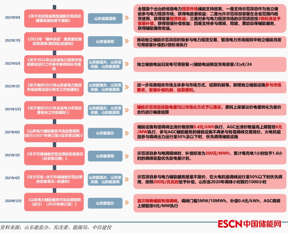 圖:山東獨立儲能支持政策變遷