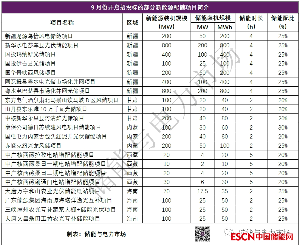 以9月份開始招投標(biāo)的部分新能源配儲項(xiàng)目為例,就有新疆、甘肅、西藏、內(nèi)蒙、海南等地新能源配置儲能比例超過了20%。并且在這些項(xiàng)目中,儲能時長除2小時外,4小時、5小時的長時儲能也屢見不鮮。例如西藏的存量光伏項(xiàng)目,按照25%,持續(xù)放電時長5小時配置儲能,儲能相當(dāng)于可以存儲光伏按額定功率發(fā)電時,1小時的發(fā)電量(參考文章:25%/4小時,西藏光伏項(xiàng)目開始高比例配置儲能)。