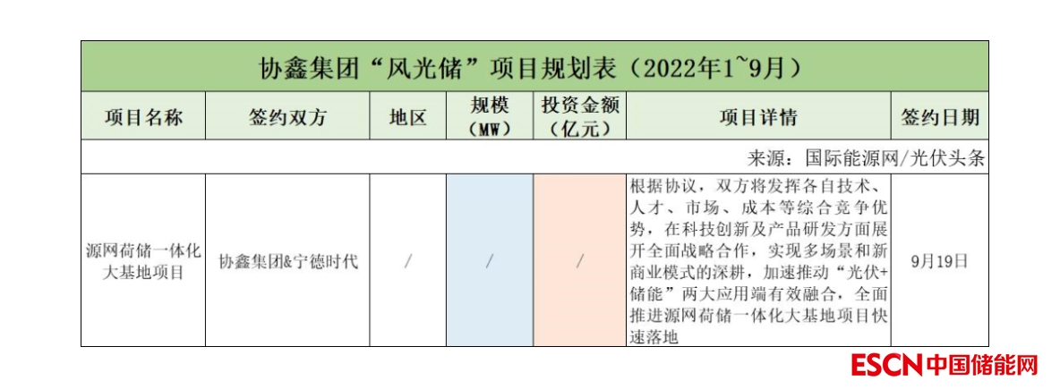 截至2022年9月30日,協(xié)鑫集團共簽約(規(guī)劃)1個風(fēng)光儲項目,該項目僅簽署了合作協(xié)議。