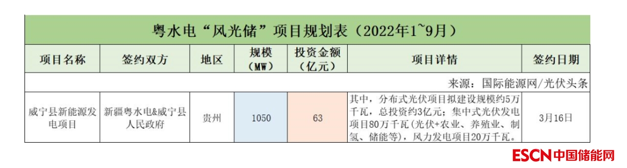 截至2022年9月30日,粵水電共簽約(規(guī)劃)1個風(fēng)光儲項目,項目規(guī)模為1.05GW,投資金額63億元。